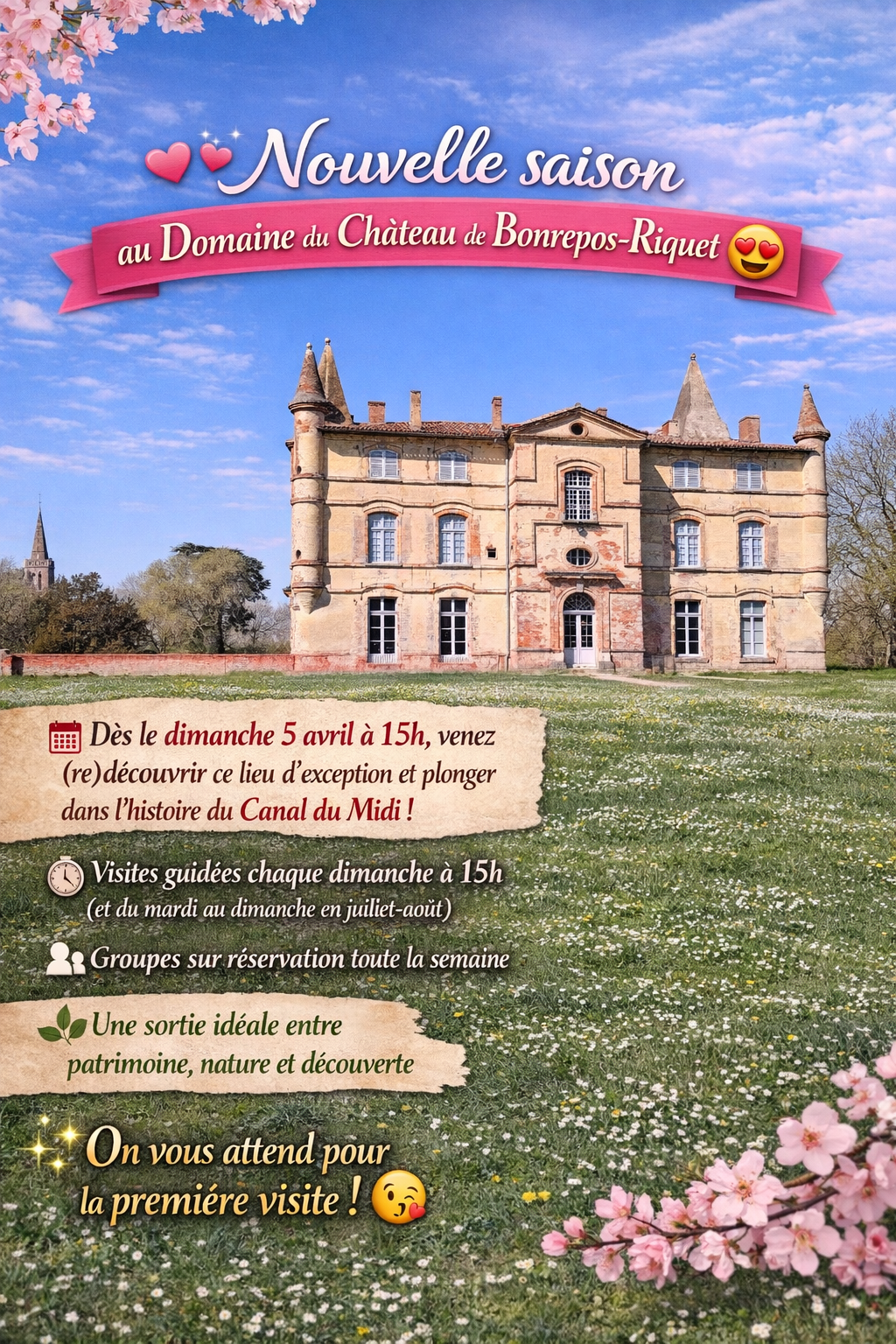 | Par courrier | Association SVDBR - visites du château - 1 place Pierre-Paul RIQUET - 31590 BONREPOS-RIQUET |